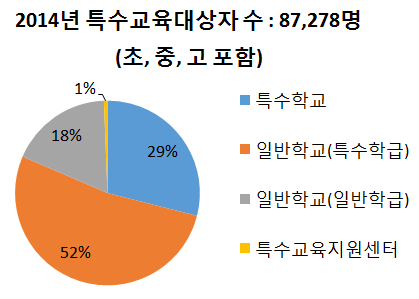 - 2014년 기준 전국에는 약 8만 7천명의 특수교육 대상자(장애학생)이 있었어.