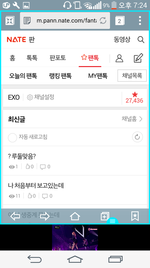 생중계 작은 화면으로 띄우고 엑톡 하는 방법 아는 년 있음?