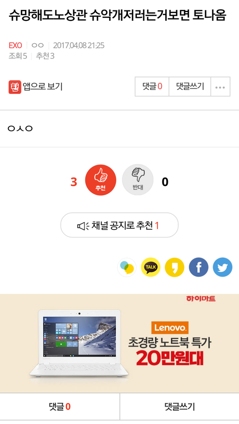 글올라오자마자 조회수 3에 추천수 3임