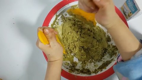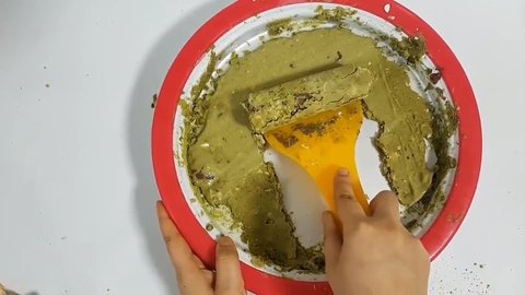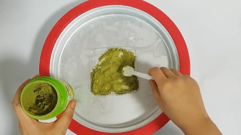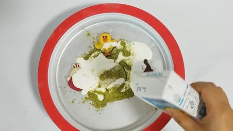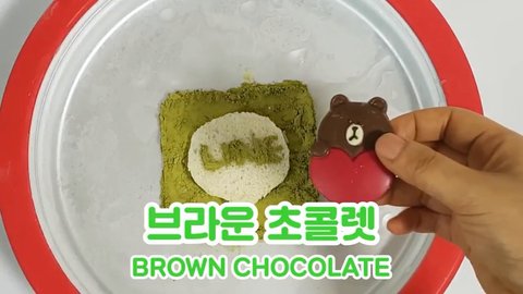 우선 철판 아이스팬에 라인 어플을 만들기 위해 녹차가루로