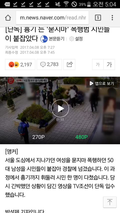 남자가 길거리에서 여자를흉기로폭행한사건이었음