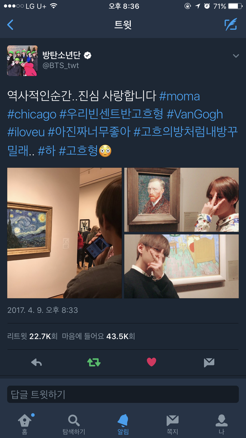 zzzzzzㅋㅋㅋㅋㅋㅋ고흐형이래 아 사랑해요 김태형 너무좋아진짜 알럽유 태형