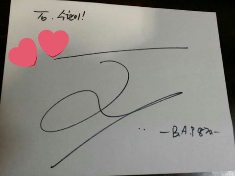 짹에서 봣는데(올리신분 어머니가 일하는 가게에 비에이피 가와서 싸인받았다는 내용이였고 본문에 올라온 사진임)