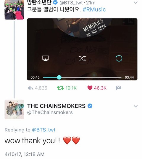 헐 ㅊㅇㅅㅁㅋ님들이 남준이 짹 답장함