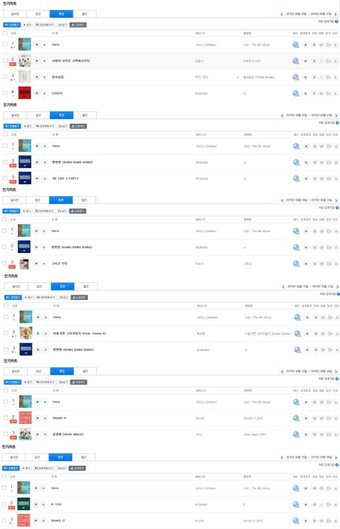 비록 음원사이트 규모는 멜론에 비해 작더라도 SM남자아이돌 최초로 음원사이트 6주연속 주간 1위 함. 아무리 팬덤이 커도 음원사이트 하나에서 6주연속 1위에 빅뱅 메이드시리즈 10곡에 무도가요제 7곡 고정되있던 모든 음원사이트 통합한 차트 2015년 가온 디지털 연간에서 38위 한다는게 쉬운게 아님