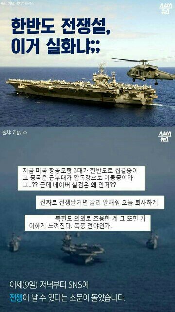 지금 자꾸 전쟁 날 거라고 하는데 안 날 거니까 걱정마 제발 확실하지 않은 글 올리지 말아줘..