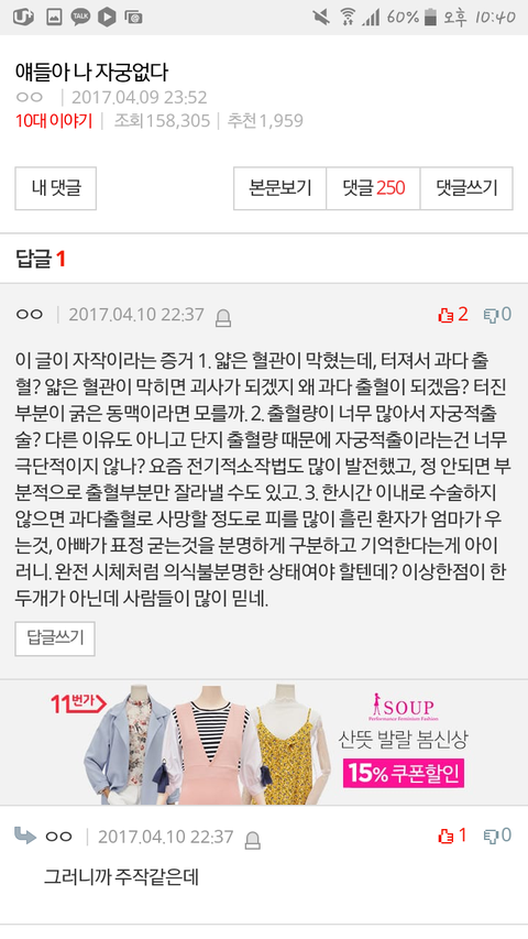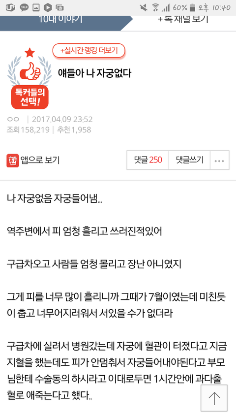 자궁을 들어냈다는 걸로 톡선가고싶나;그렇게 살지마라