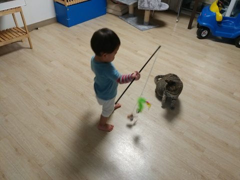 둘이 꺼내놓고 도마뱀 움직일때마다 도망 다녀요