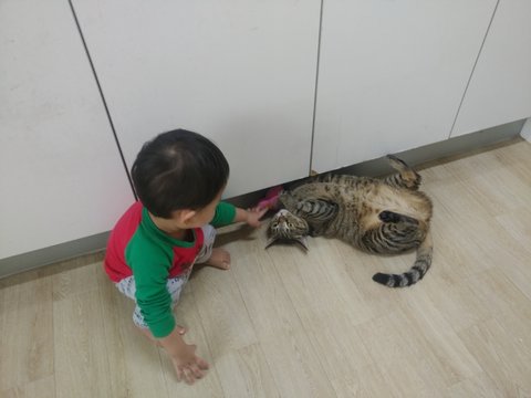 애가 고양이랑 자라서 강아지만 보면 울고불고
