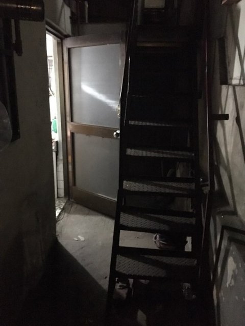 사람을 불러 계단 난간에 되어있는 용접을 떼어 계단을 올릴 수 있게 조치해달라고하니