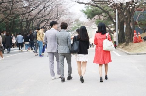 ▲ 벚꽃미팅에 참가한 참가자들이 남녀 2대2로 매칭하는 벚꽃데이트를 즐기고 있다