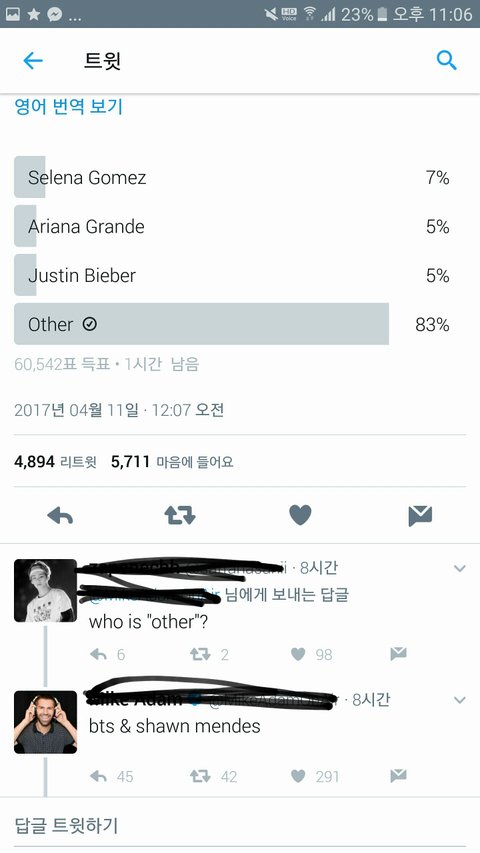 트터에서 투표를 했는데 방탄과 shawn님과 others 기타에 들어갔어