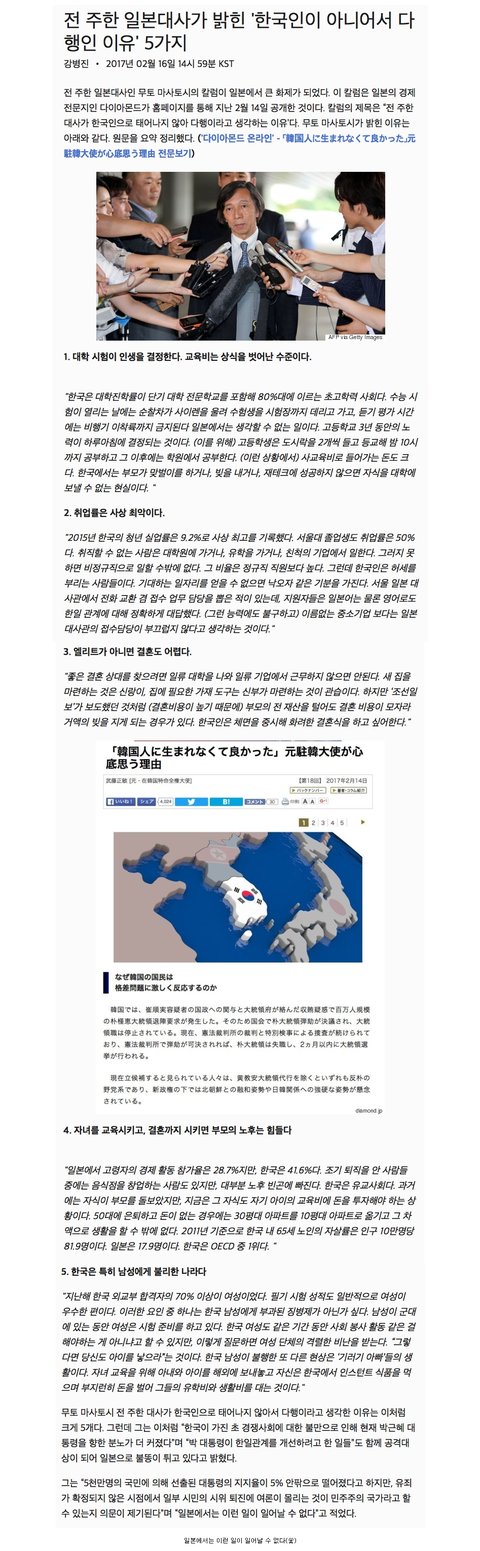 前 일본대사가 말하는 한국인이 아닌게 행운인 다섯가지 이유.jpg