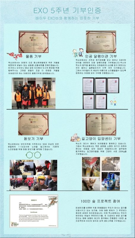 그리고 요즘에는 엑소 추세가 선물은 좀 받지 않고 좋은 데에 쓰라고 해서 팬들이 기부도 많이 하나봐 숲도 많이 만들던데 미세먼지 많은 요즘 좋아요