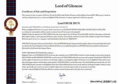 스코트랜드에 후니이름으로 땅을 조금 샀대