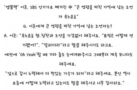 이 외에도 유노윤호를 만난 아이돌들은 유노윤호가 잘 조언해준다고 많이 언급함!