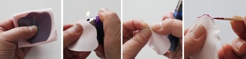 미리 만들어놓았던 꽃잎 위에 접착하면