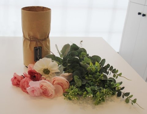 빈 생수병을 크라프트지로 감싸만든 화병에 꽂아