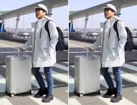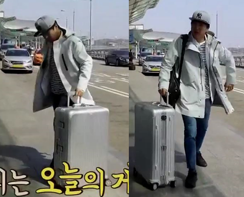 엄청 큰 캐리어에 랑방스포터 점퍼 휘날리며 등장