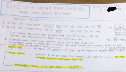 이 학생은 예매에 성공할 경우 "기쁜 마음으로 시험 끝날 때까지 더 열심히 공부하며 시험이 끝나면 행복한 마음으로 콘서트를 다녀온다"고 적었다. 그러나 예매에 실패할 경우 "인터넷에서 암표 사기 등 방법이 있지만, 사기꾼이 많아 위험할 수도 있으므로 더 열심히 공부해서 시험 끝나면 마음껏 놀 것"이라고 적혀있다.