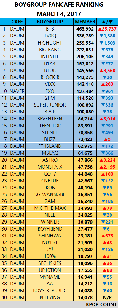 세븐틴 팬카페 회원수 증가