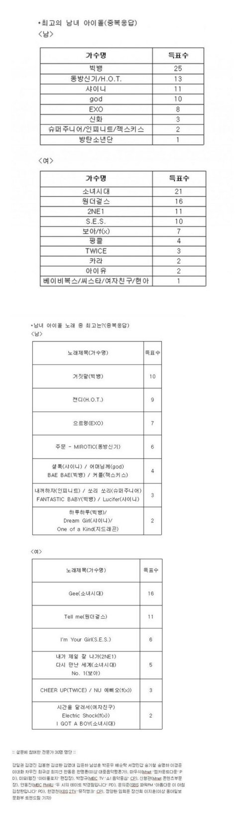 평론 방송 국가는 빅뱅의 대중성을 더 높게 평가함