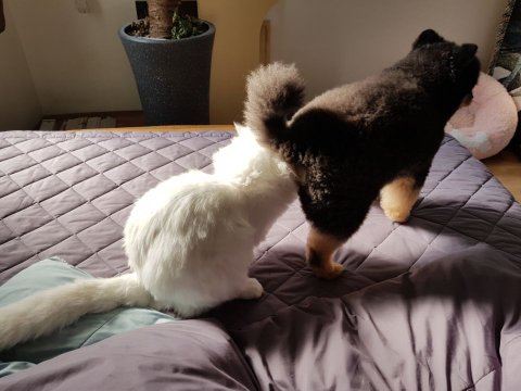 모카는 보자마자 좋다고 난리고 라떼는 처음 딱보고