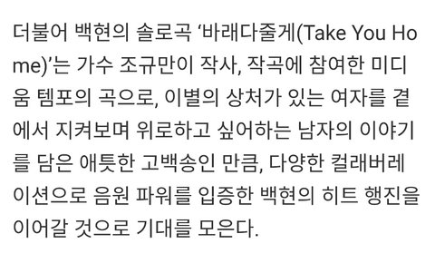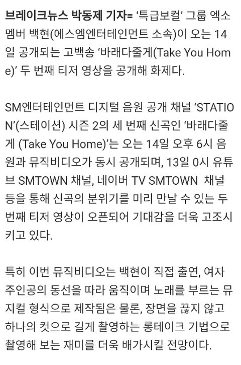 '특급보컬’ 엑소 백현, 고백송 ‘바래다줄게’ 2번째 티저 공개 ‘시선집중’