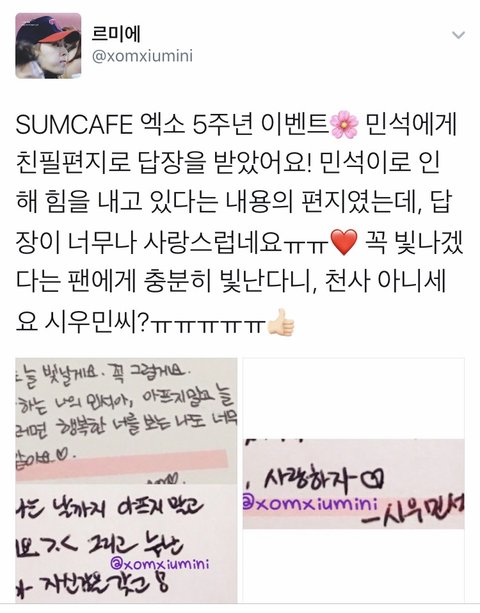 민석이 친필 답장 받으신 팬분 정말 부럽고 트윗에 공유해주셔서 정말 감사해여ㅠㅠㅠㅠㅠㅠㅠㅠ