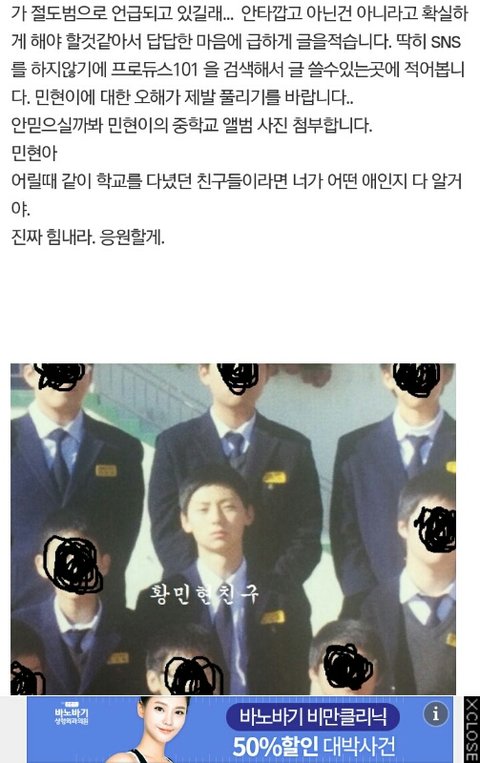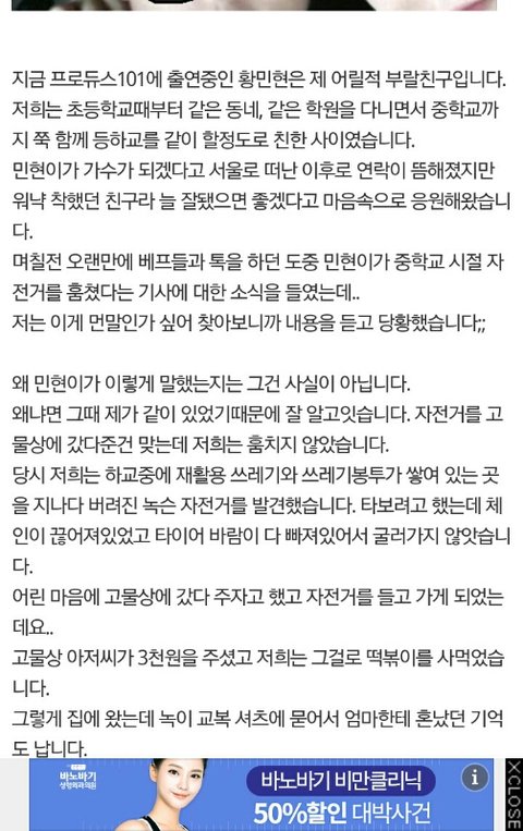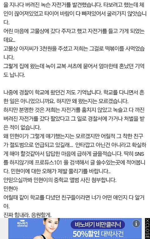 +프로듀스 101 황민현 자전거 사건 동창이 피드백 함(담임 선생님 페이스북 피드백 글 추가)