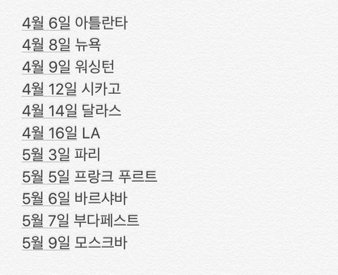 보통 티켓 예매가 한달반 전인데 아직 뜬게 없으면 더 이상 없는건가? 2달 일정이라고 했으니까 6월 초꺼까지 떠야 되잖아...