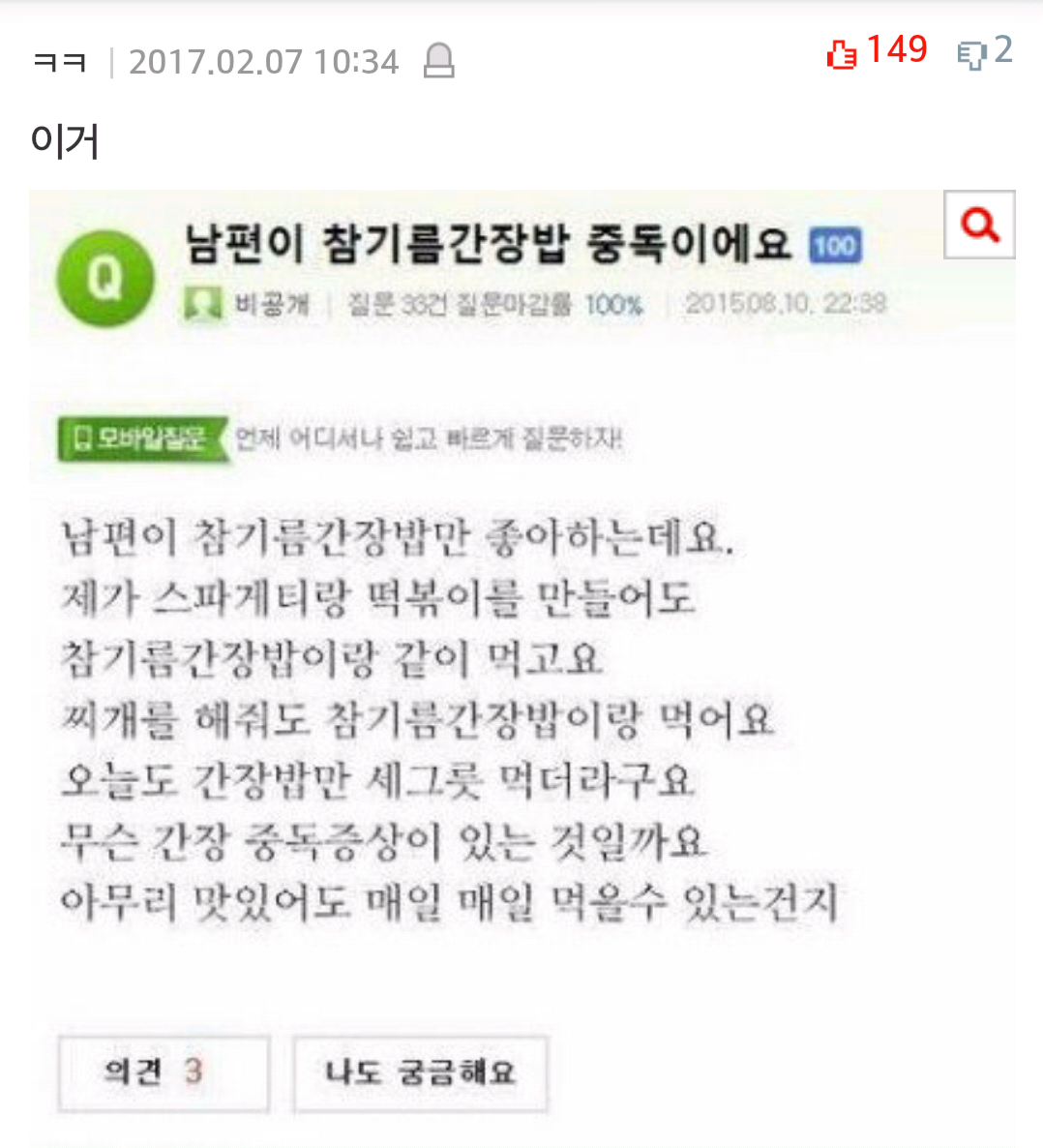 남편이 참기름 간장밥 중독이에요...