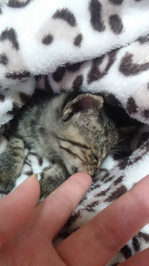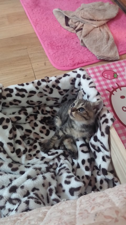 편의점 아이스크림 통 뒤에 왠 새끼고양이 울음소리가들려 플래쉬 비춰보니 손바닥만한 고양이가 구석에서 오도가도못한채울고있었어요.처음엔 주위에 엄마고양이가있는데 사람들 오고가는 출입구 바로밖에 있어서 못데려가나 싶은거에요..그래서새벽에라도 데려가겠지 라는생각으로 2~3일 내내지켜봤는데 길고양이그림자도안보이고 새끼냥이는 그대로 거기서 3일을 울고있더라구요.그래서 작대기가지고 툭툭쳐가며 남자친구는 반대쪽 저는 이쪽 에서 나오게 유인해서 결국 나왔고 정말작았고 놔두면금방죽을것같은 아깽이를 잡게됬어요 ㅜㅠ 냅다병원데리고가서 진료받고 접종시키고 집에데려왔답니다 ^^