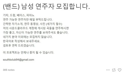 밴드 연주 멤버 모집한 후 따로 밴드 음악 준비중