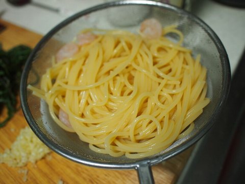 오늘은 냉파스타니까 넉넉하게 8분 삶습니다.