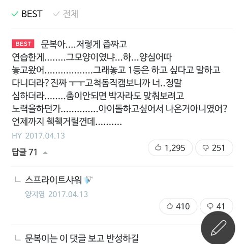 이글을 4일?전에 썼는데 오늘 선공개영상보니 벌써 장문복은 진상이미지로 낙인찍힘 무려 첫번째 베댓...............
