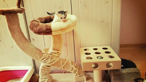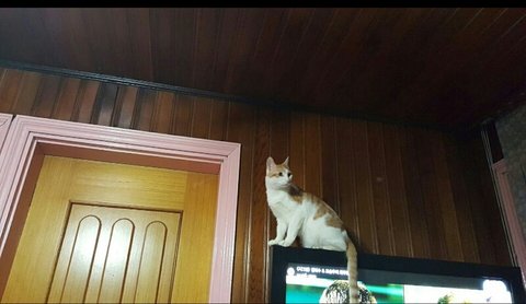 단비는 티비위에 올라서 아래를 내려다보며 대장인걸