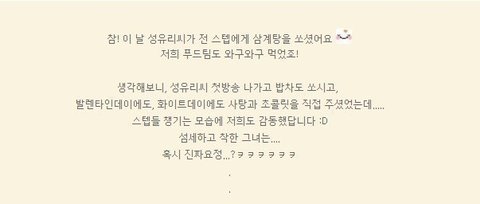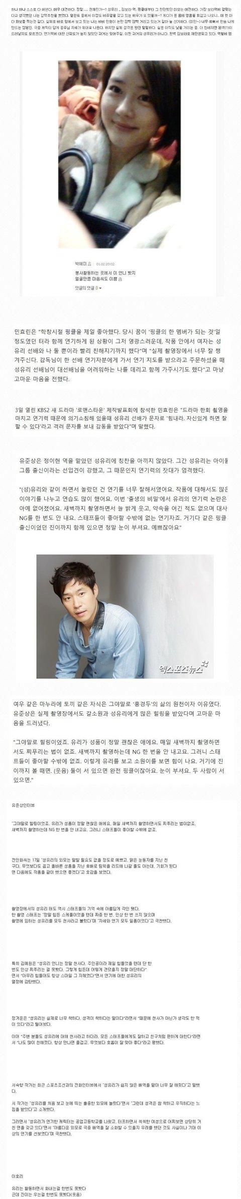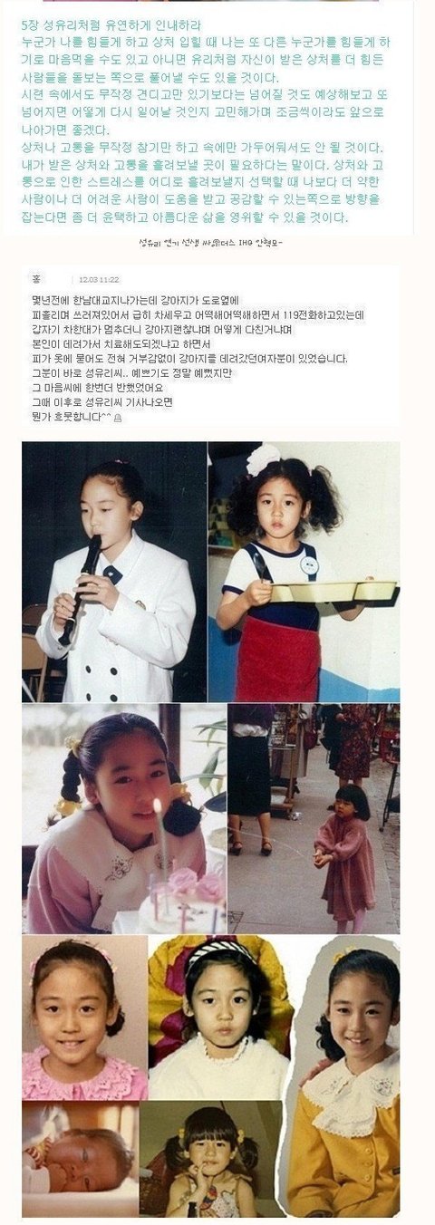 성유리 일반인 인스타그램 덧글에 남긴 후기 아까 한우리 식당 앞에서도 마주치고 우연히 화장실에서 또 마주쳐서 인사드렸는데 공손하게 인사 받아주셔서 넘 감사했어요 내면까지 아름다운 유리언니 목소리도 매력있으시구.. 또 뵙고싶어요ㅜ 이 후기도 일반인