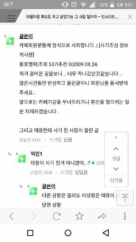 이제 태용이 오해 풀리고 인성으로 까는사람들