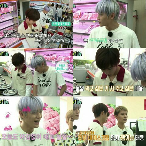 1. NCT LIFE 단합 대회 편에서 장 보는 도중 멤버 윈윈이 아이스크림이 먹고싶다고 함. 주어진 돈은 10만원 뿐이라 아이스크림은 커녕 다른 음식들도 살 수 없는 상황. (멤버는 총 7명이였음) 평소 애교 잘 부리지 않는데 애교로 피디님께 장보기 비용 부탁하고 허락 받자마자 윈윈 아이스크림부터 챙겨줌 .