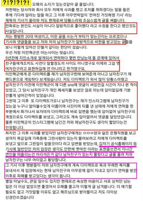 1. 이민혁이 공카 게시글 상에서 여자를 '옛여자친구'라고 칭한것, 소속사가 피드백한 4개월교제여부 -> 진실여부를 알수없음 아무도 따질수없음