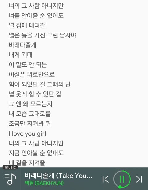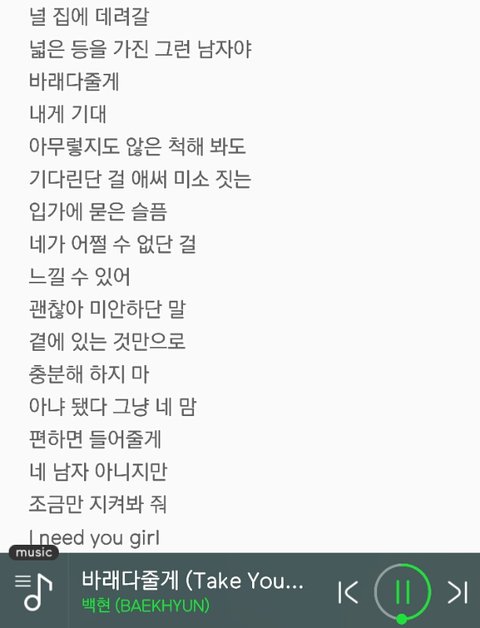 백현이 바래다줄게 가사