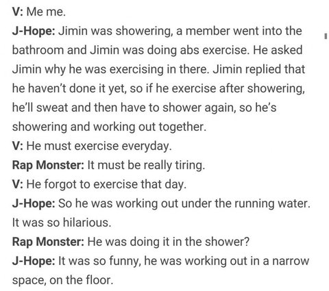 jh : 지민이가 씻고 있고 다른 멤버가 화장실에 들어갔는데 지민이가 복근
