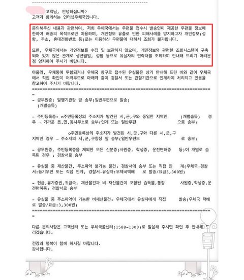 똥혐이의 우체국 주작에 대한 우체국 공식답변