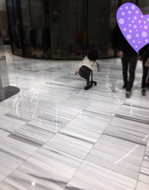 백화점 바닥은 반짝거리는 타일 소재로, 굉장히 미끄럽습니다.