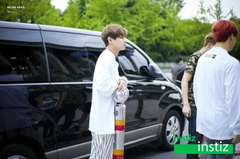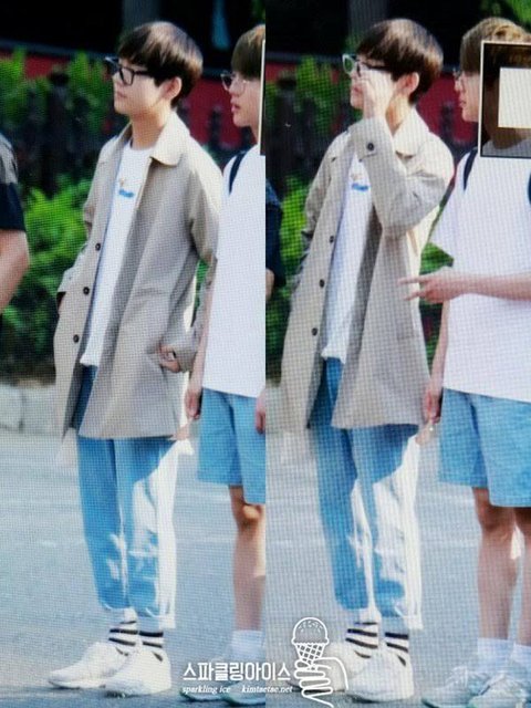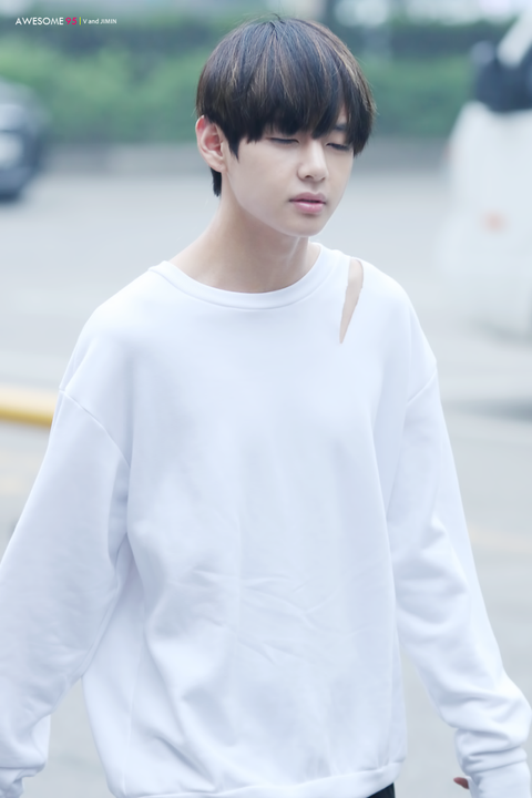 뷔가 단체사진 찍을때 제일 바깥쪽에 많이 서서 카메라왜곡때문에 실물보다 더 커보인다