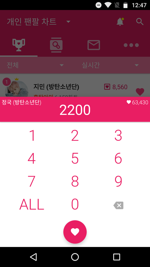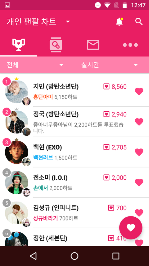 스밍, 팬팔 하트 투표 인증~ 현재 1,2등~^^
