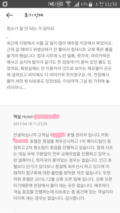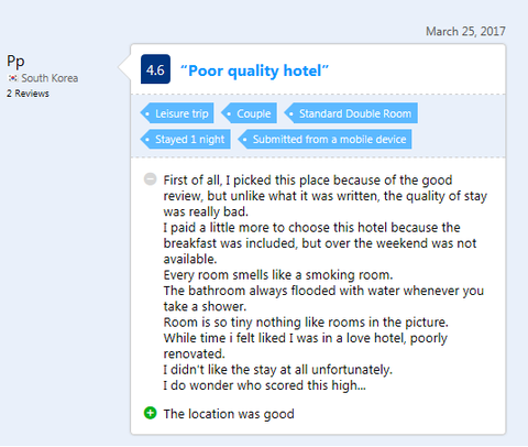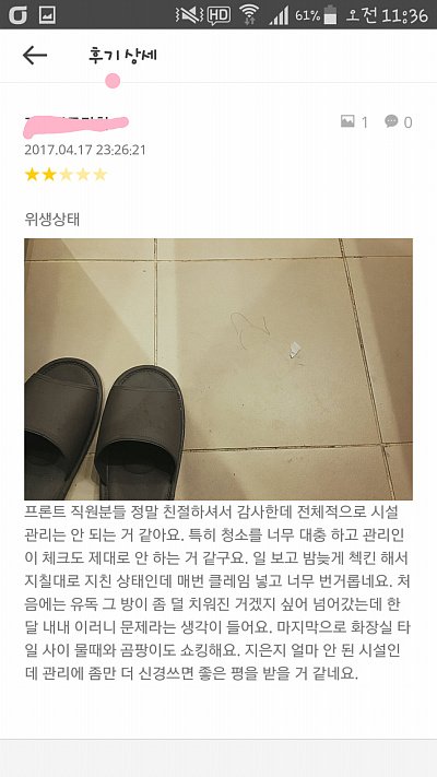 정말 이건 아니다 싶어서 숙박 예약 사이트에 후기를 남겼습니다