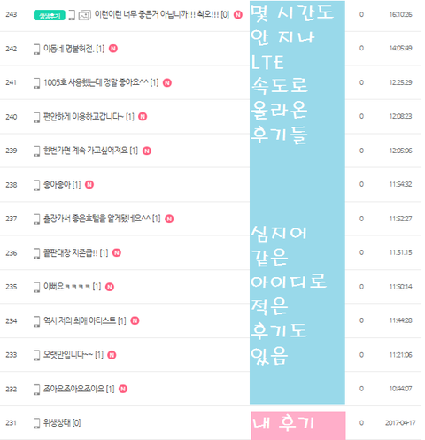 하루에 하나, 혹은 며칠에 하나씩 올라오던 위 숙박업소의 후기가