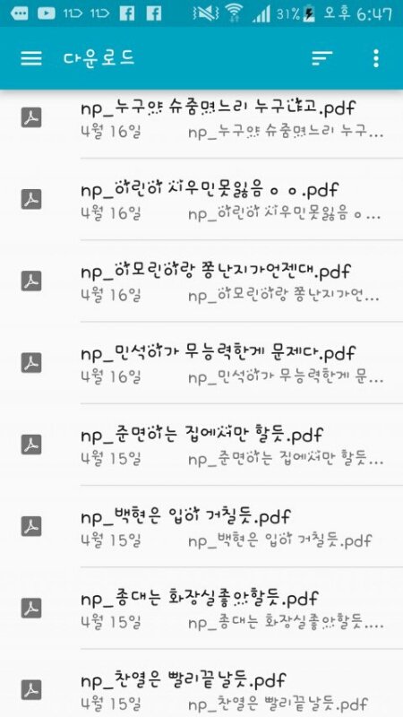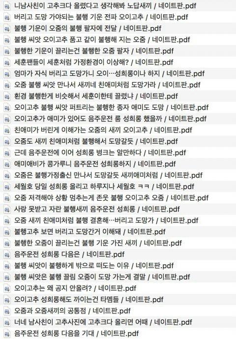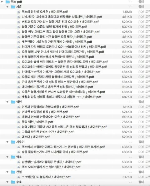 다음은 최근 이틀간(4월16일/17일) 엑소톡에 들어온 안티들의 만행을 pdf캡쳐해놓은 목록입니다.